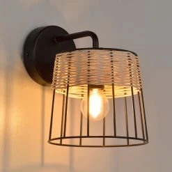 Corep Applique En MĂ©tal Et Rotin H20cm Noir – Indah