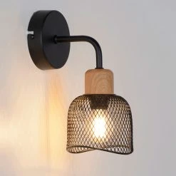 Corep Applique Base Ronde En Bois Naturel Et Métal Noir