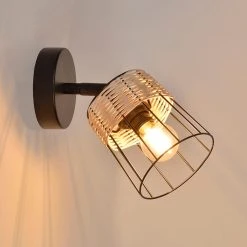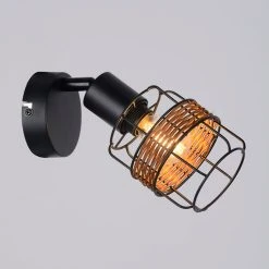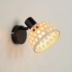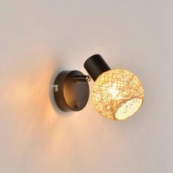 Corep Spot 1 Lumière En Metal Et Rotin Tresse H18.5cm Noir – Indah