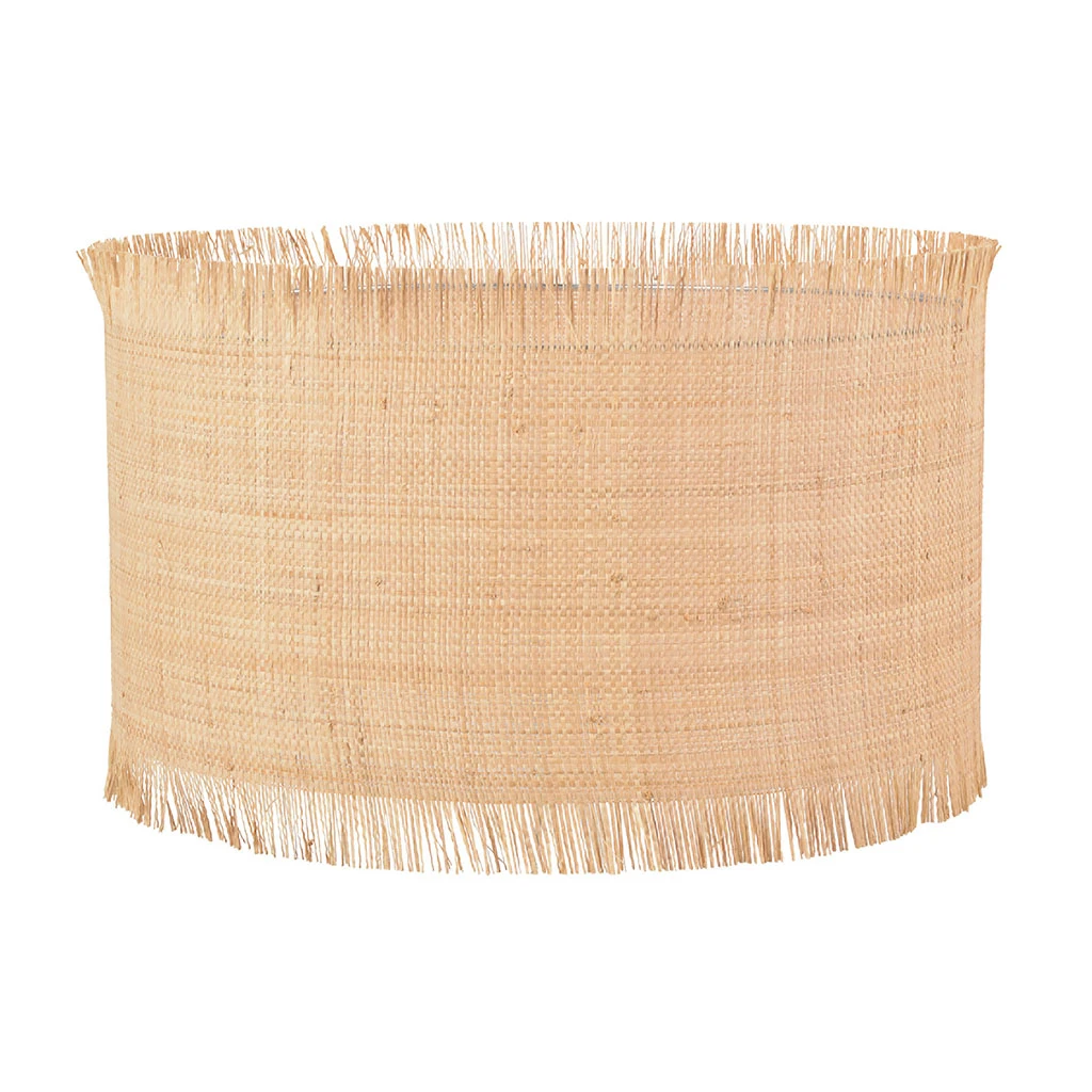 Abat-jour forme cylindre en matière naturelle raphia double franche – Bague E27
