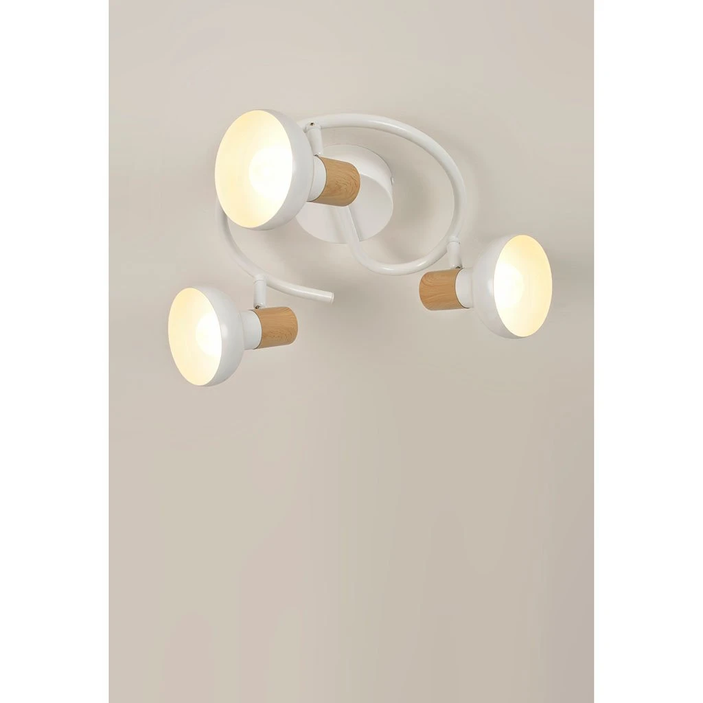Corep Plafonnier 3 Lumières En Metal Effet Bois D27cm Blanc – Alvar