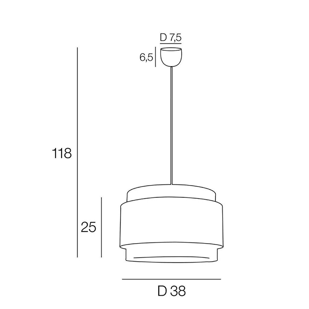 Suspension empilement de 3 cylindres en coton. Coloris : visages/caramel. IP20. D38cm – H25cm – HT118cm. Classe 2. E27-100W.