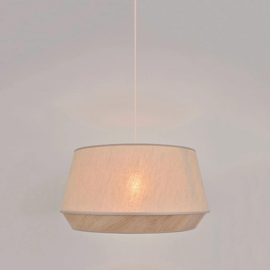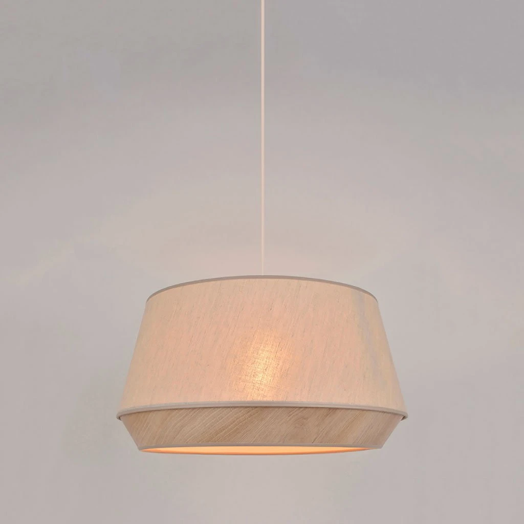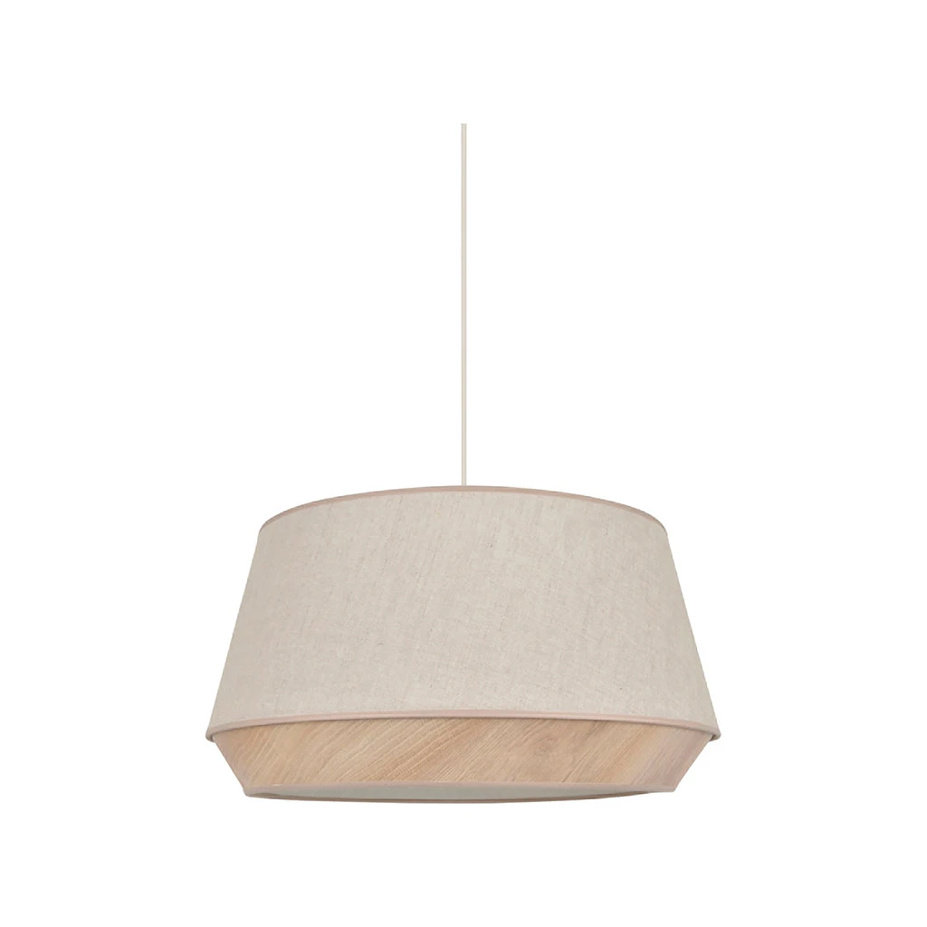 Suspension diamant en coton et décoration effet bois.