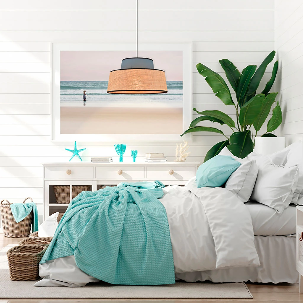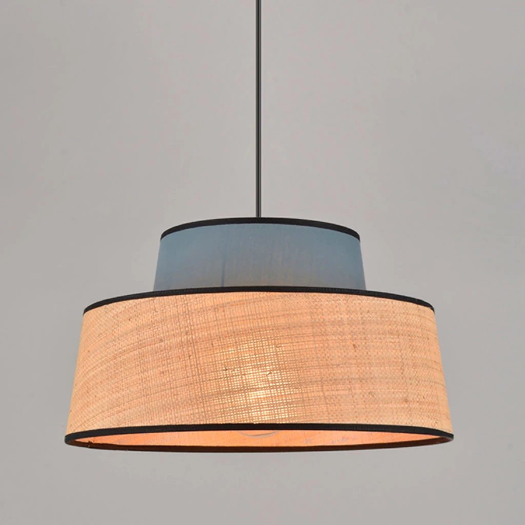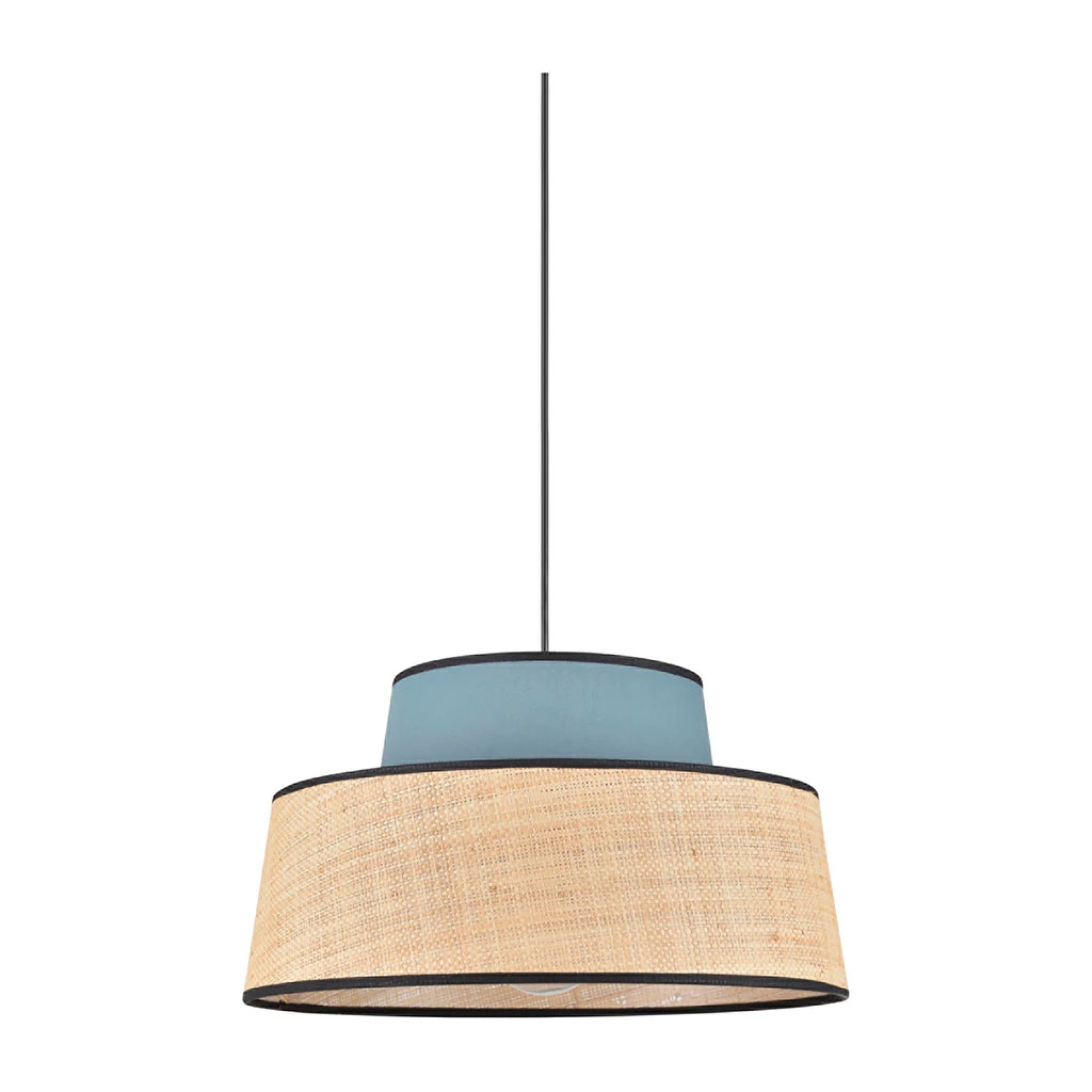 Suspension composée de 2 coniques : 1 petit en coton et le plus grand en matière naturelle raphia.