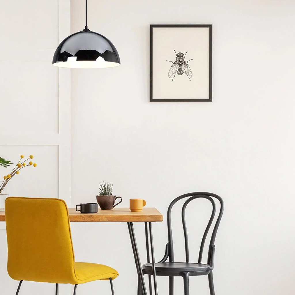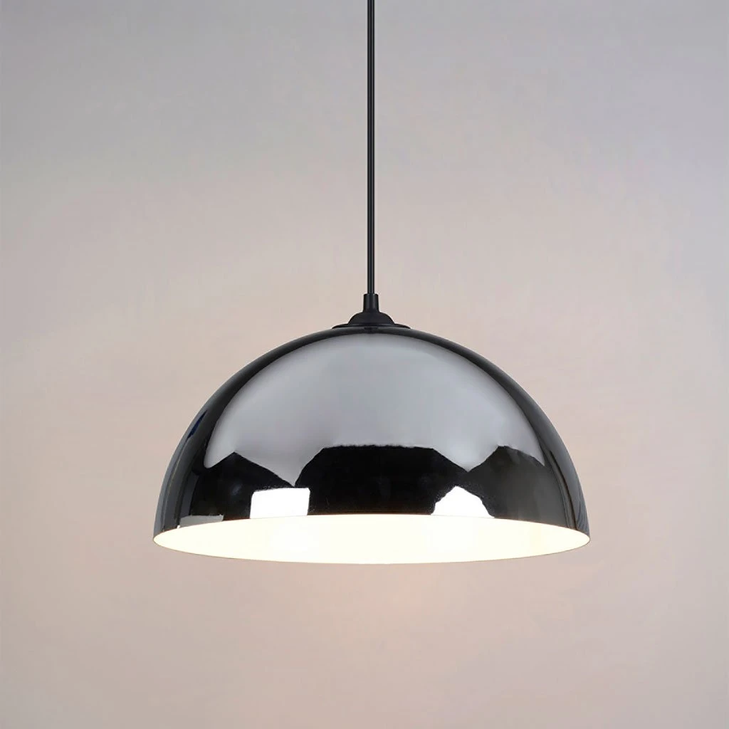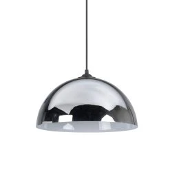 Suspension dôme en métal intérieur blanc. Coloris : chrome. IP20. D30cm – H95cm. Classe 2. E27-40W.