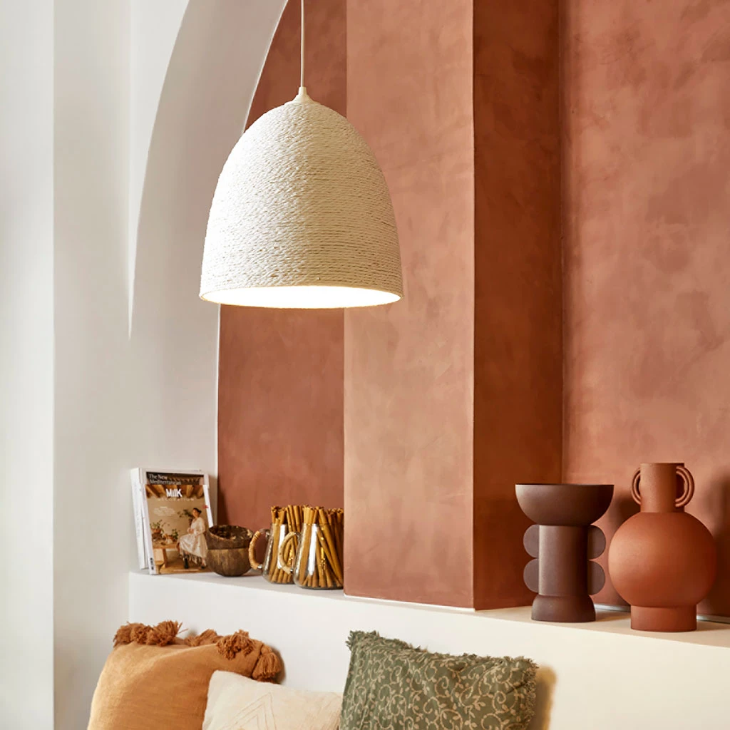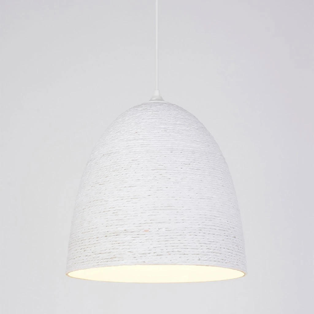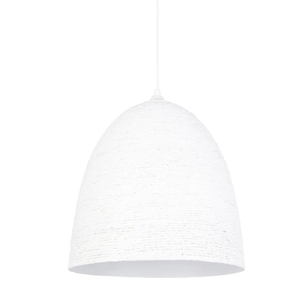 Suspension forme dôme en corde naturelle. Coloris : blanc. IP20. D31.5cm – H31cm. Classe 2. E27-40W.
