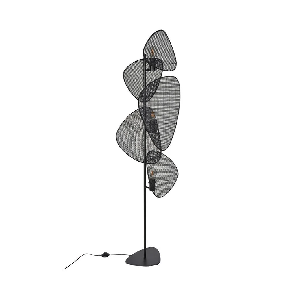 Lampadaire 3 lumières base en métal peint. Abat-jour composé de 5 écrans en cannage. 3 ampoules E27 40W max non fournies.