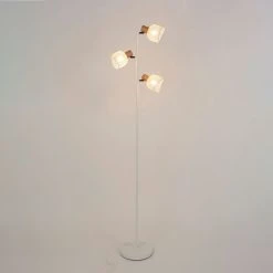 Lampadaire en métal peint finition sablée et détails laiton, forme trépied, orientable. Abat-jour conique bi-matière. Ampoule E27 15W max non fournie.