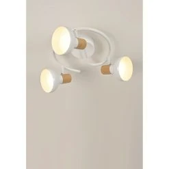 Corep Plafonnier 3 Lumières En Metal Effet Bois D27cm Blanc – Alvar