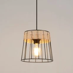 Corep Suspension En Métal Et Rotin D35cm Noir – Tambour